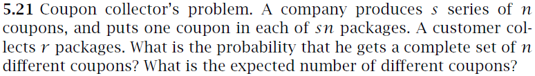 coupon collector problem in R : AskProgramming - reddit I am new to programming and I am working with R at the moment to simulate the coupon collector's problem. Imagine there is a sticker album with 250 pictures. You can buy packs of 5 (those 5 in a pack are always different). The question is, how many packs does one have to buy, to complete the set.